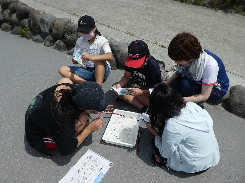 生き物が集まったら、図鑑で生き物の名前を調べました。