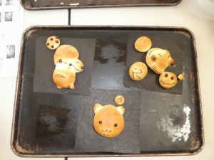 形を作って、チョコチップとチョコレートクリームでデコレーションしていきました。