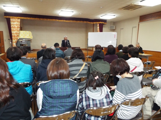 成人セミナー受講生、その他地域の方、合わせて100名近くの聴講者で熱気に包まれていました。
