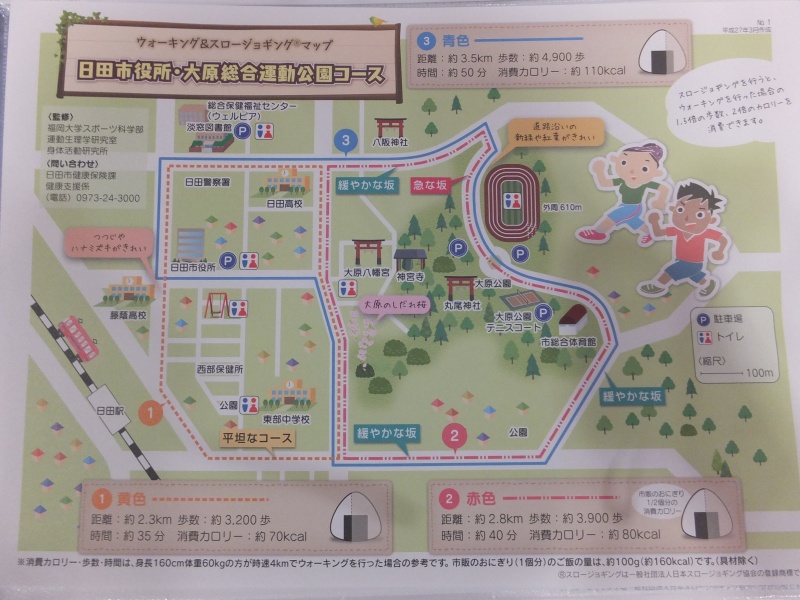 受講生の皆さんは講座終了後、公民館に置いてある、日田市内のウオーキング&スロージョギングマップ(日田市健康保険課作成)をたくさん持って帰っていました。
