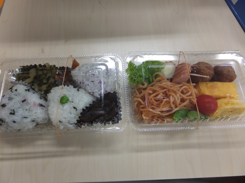 子育てサロン 室内遠足(雨天につき) 民生委員・福祉委員さんによる手作りのお弁当をいただきました。