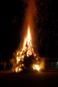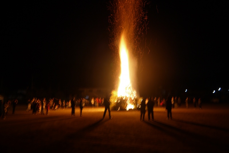 1月10日午前6時に桂林小育友会行事の「どんど焼き」が桂林小づラウンドで行われました。