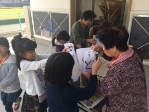 好きな絵や言葉を願いを込めて書いて、見守り隊・教え隊の皆さんと一緒につくりました。