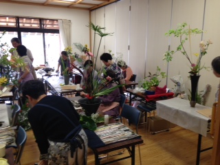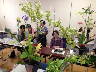 本日の貸館で、池坊橘支部の皆さんが学習室で花をいけておりましたので…少しお邪魔して…