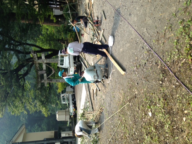 桂林の子ども達に楽しんでもらおうと朝から、そうめん流しの土台組をしてくれました。