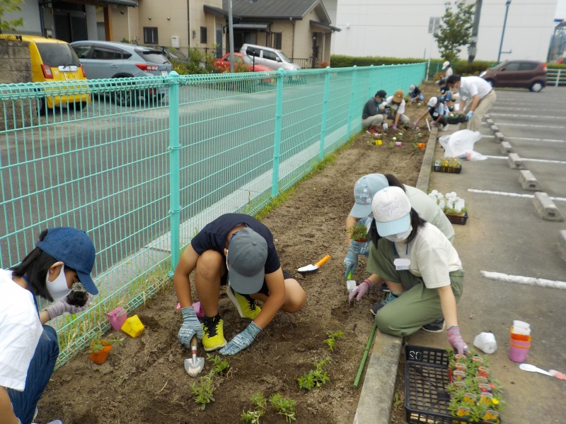 花の量が多かったものの、みんな手際よく楽しみながら植えてくれました。