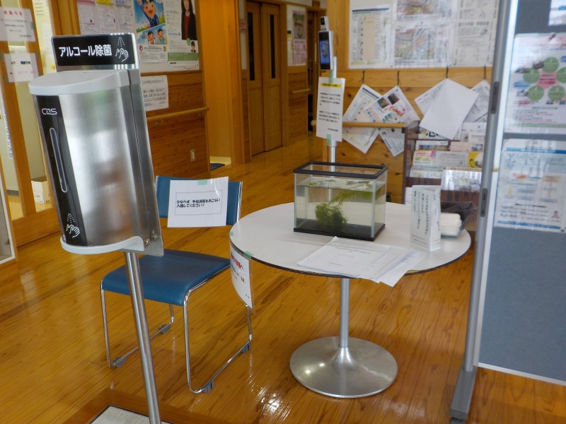玄関入ってすぐのテーブルの上に水槽を置いています。