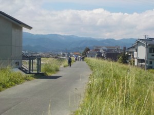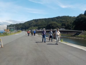 その後は高速道路下の駐車場にてトイレ休憩を行い、花月川沿いを歩き
