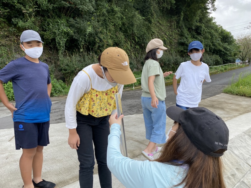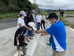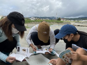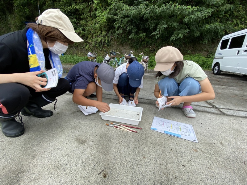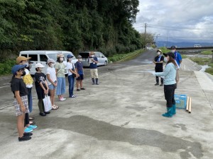 指導して下さる日田市環境課の方たちが到着したら早速調査開始です。