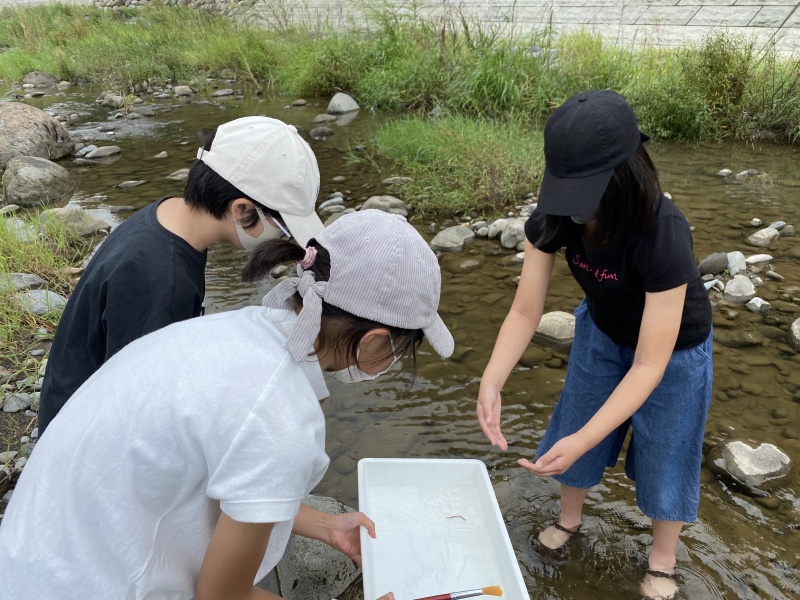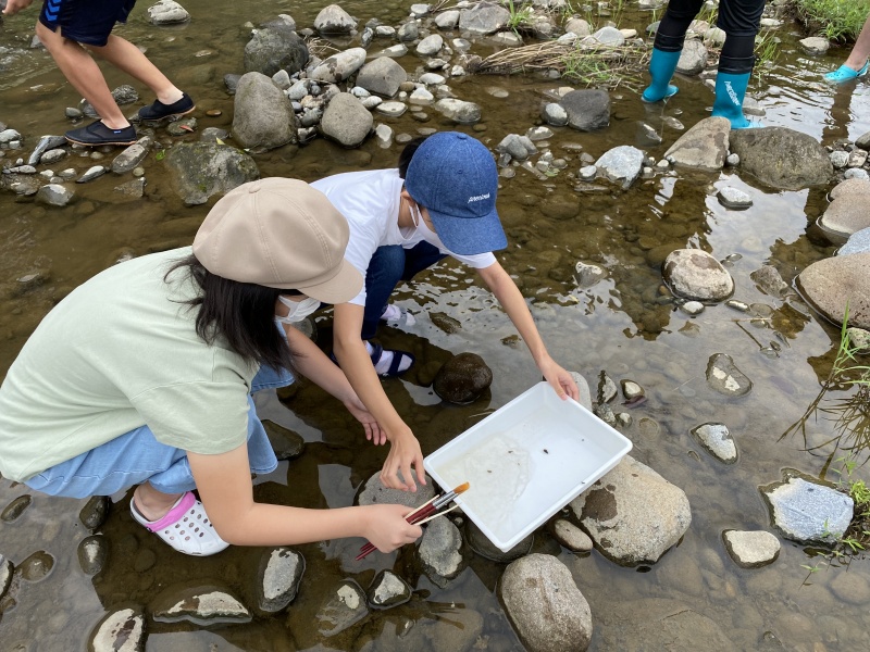 ある程度集まったら川から上がって、どんな生き物がいるか