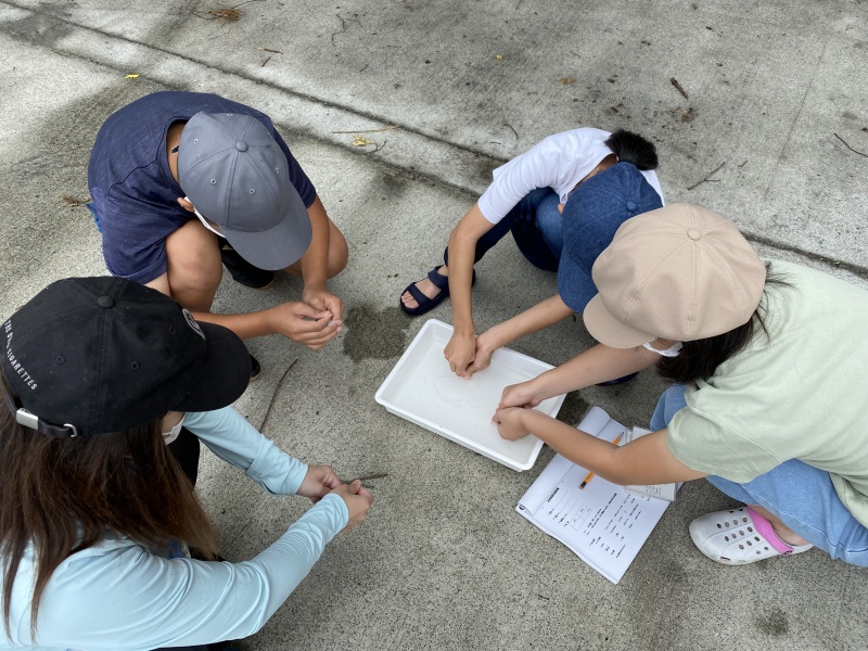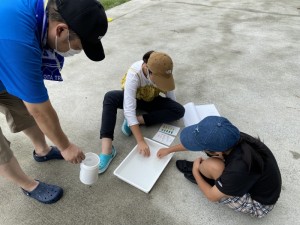 最後はみんなで検査した結果を用紙に記入して、捕まえた生物たちを