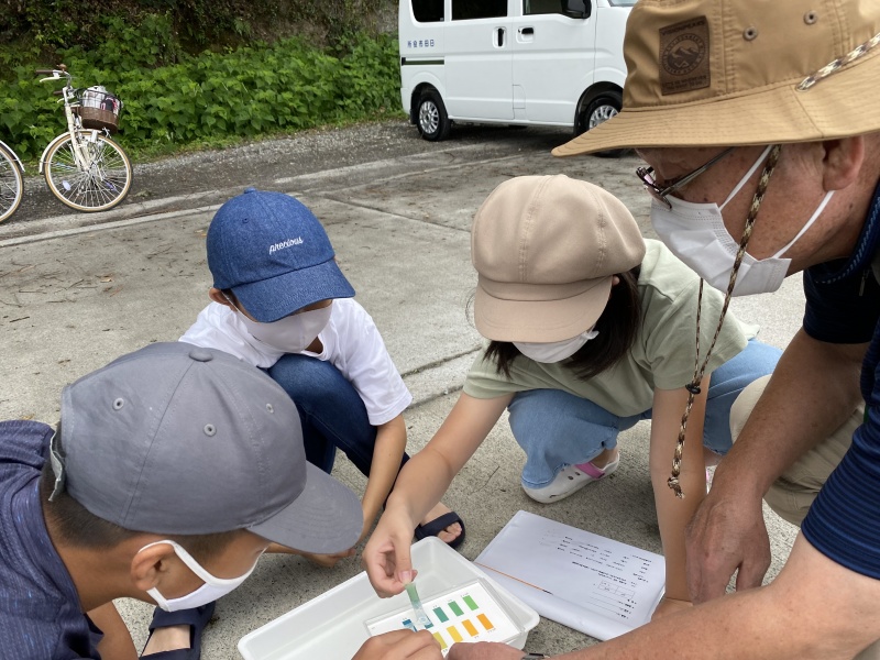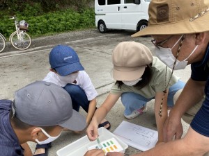 続いて水質検査も行いました。水の酸性、中性、アルカリ性を示す