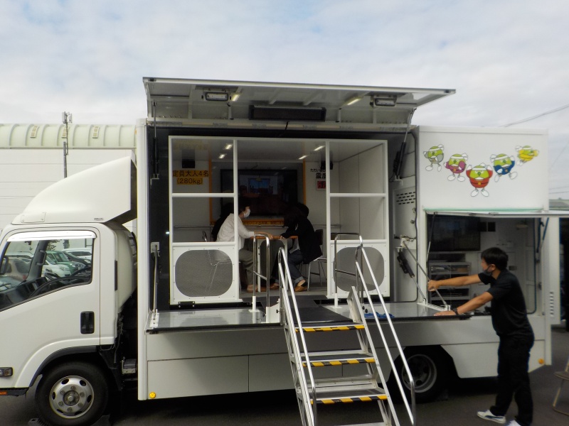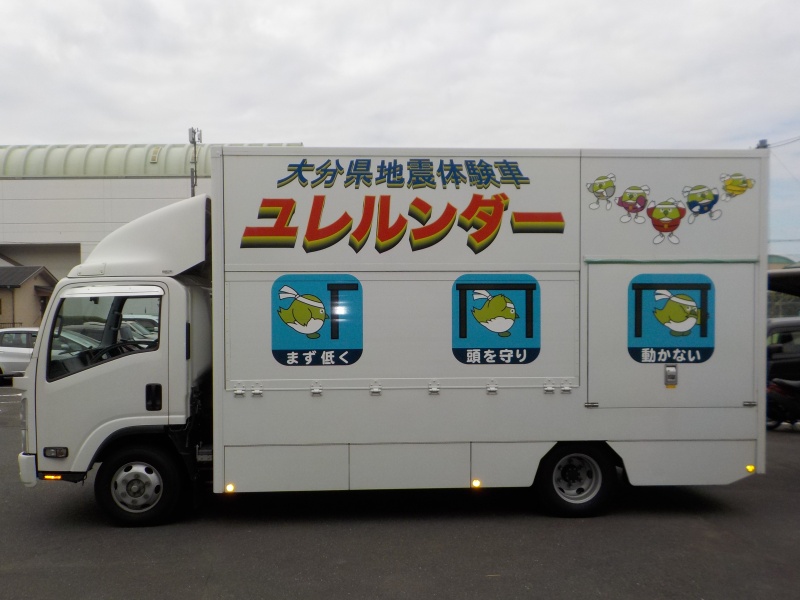 地震体験車(ユレルンダー)は大分県が所有しており、南海トラフ巨大地震等に
