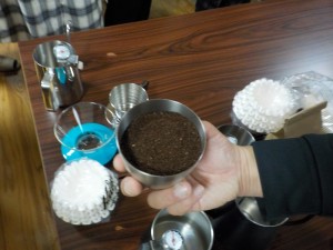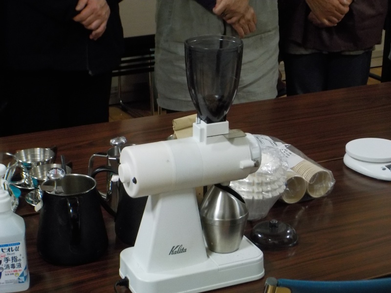 まずは先生が持ってきてくれた豆を一杯分コーヒーミルで挽きます。