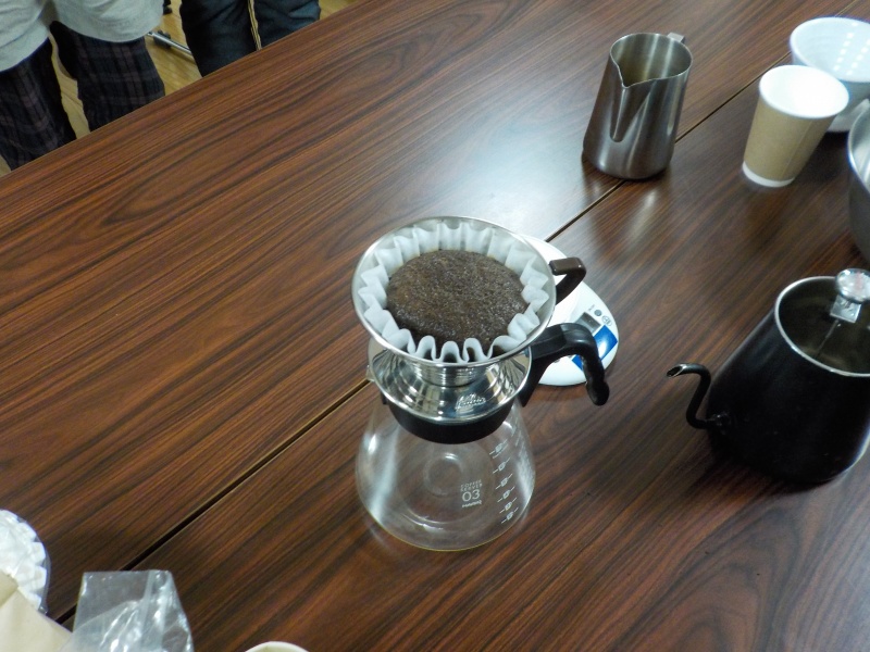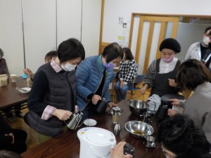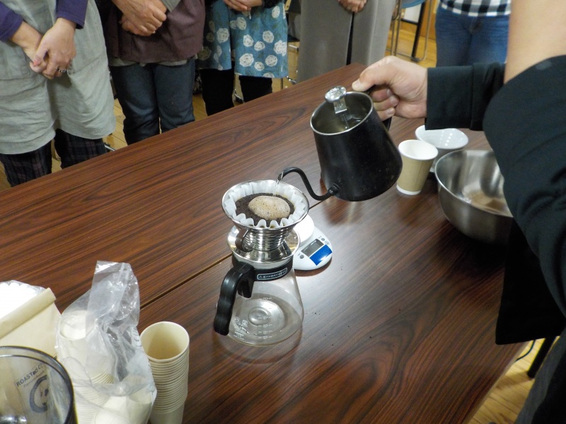 一人一人実践です。道具に限りがあるので、5人ずつに分かれて順番に淹れていきます。