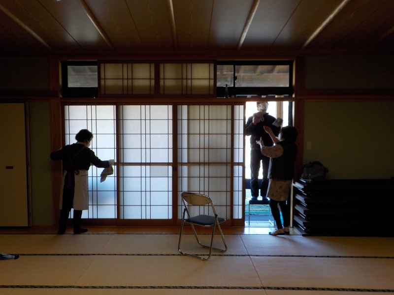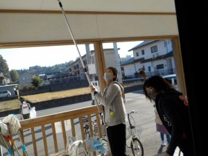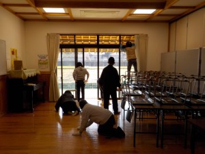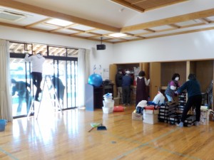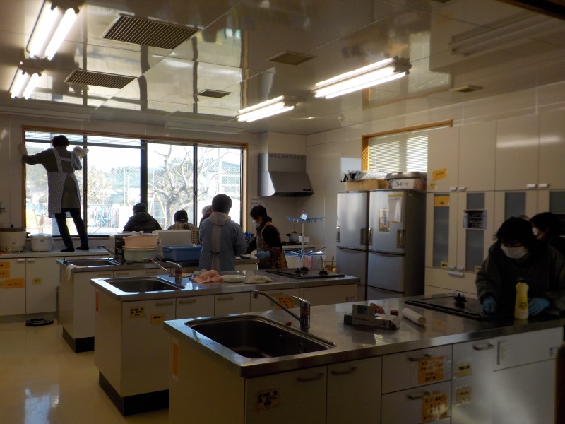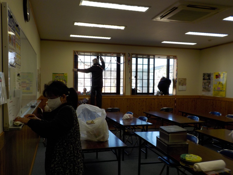普段使われている教室に分かれていただき、机やイスを全部ふきあげたり、