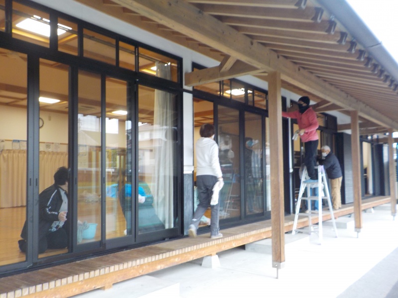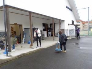 日頃掃除できない窓や網戸、玄関周りや駐車場など約1時間かけて行いました。