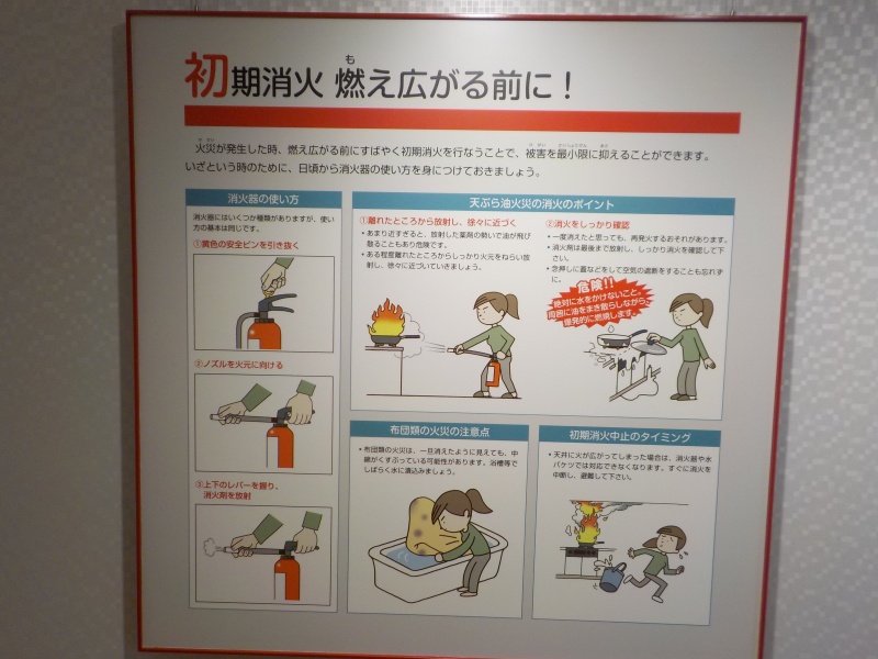 お家に消火器を準備して、消火器で対応すること。また火事の時はまず大声で