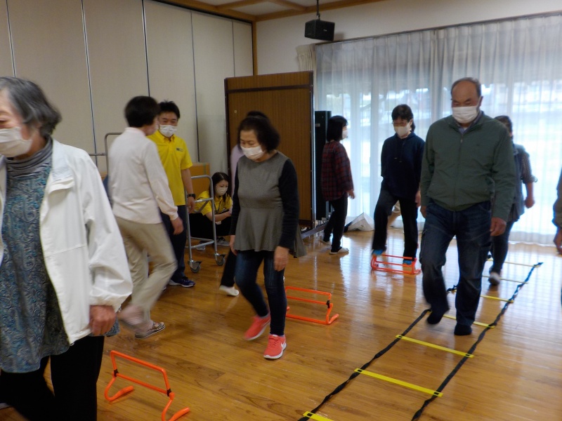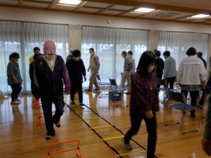 説明を聞いた後、適切な歩幅を保つため、また高さを意識するために