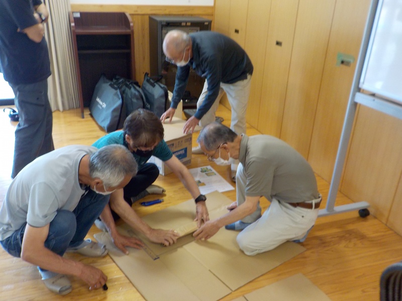 前半は3班に分かれ、煙体験とアイラップご飯の準備、消火訓練、簡易トイレ作成を。