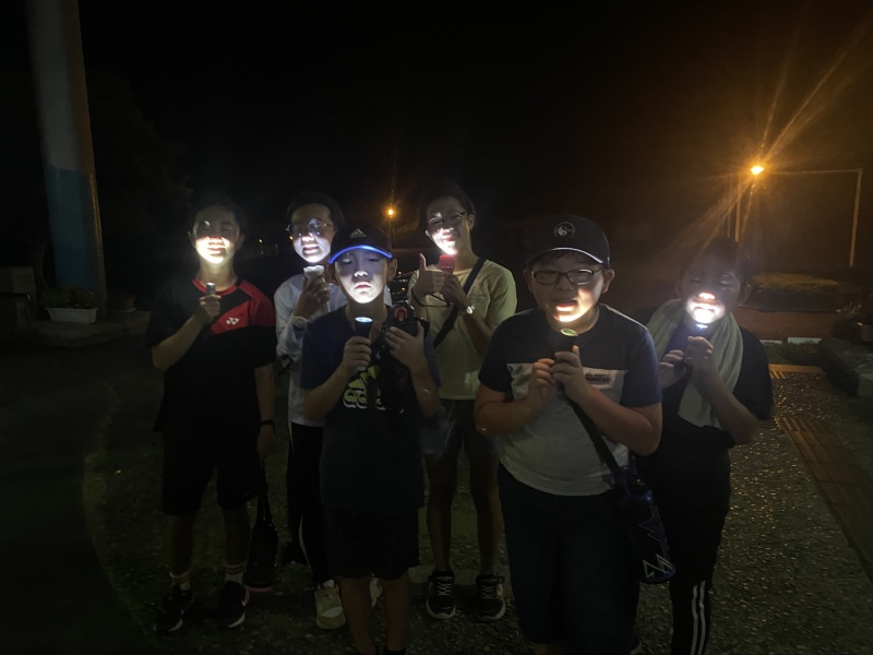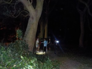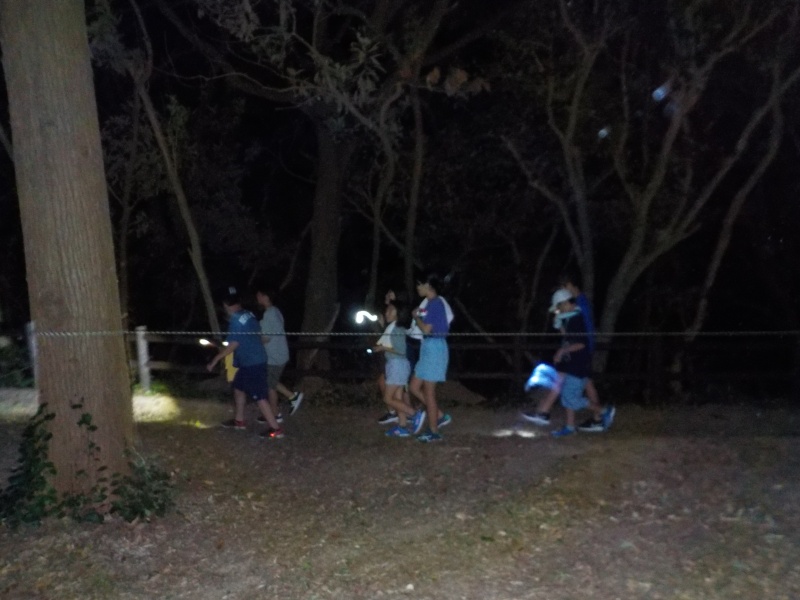 お風呂の後は、ナイトウォークです。真っ暗な中を班ごとに時間を空けて
