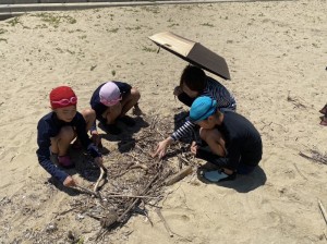 まずは浜辺の掃除からです。今はマイクロプラスチックなど