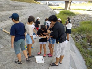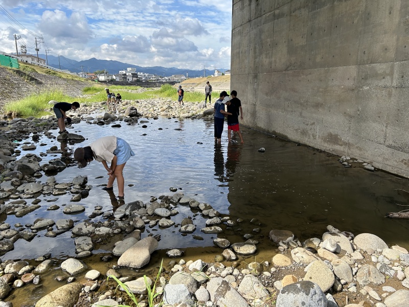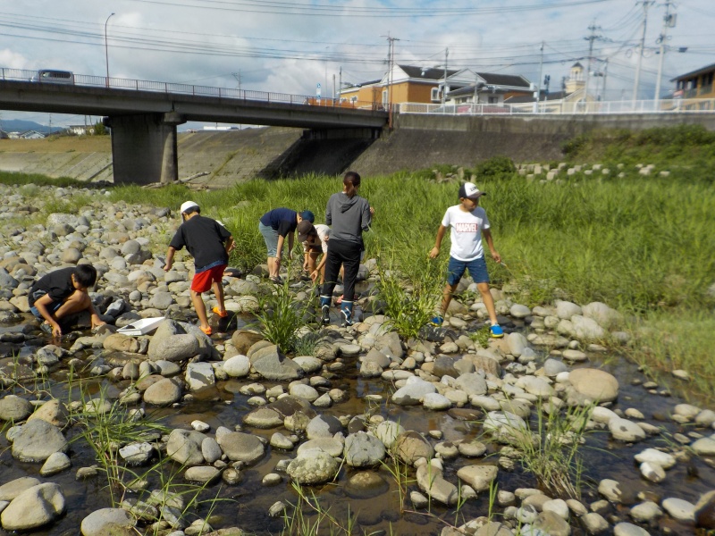 指導の下、花月川河川敷で『水生生物調査』を開催しました。