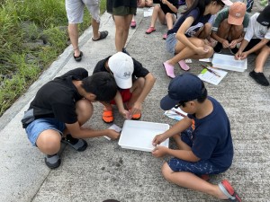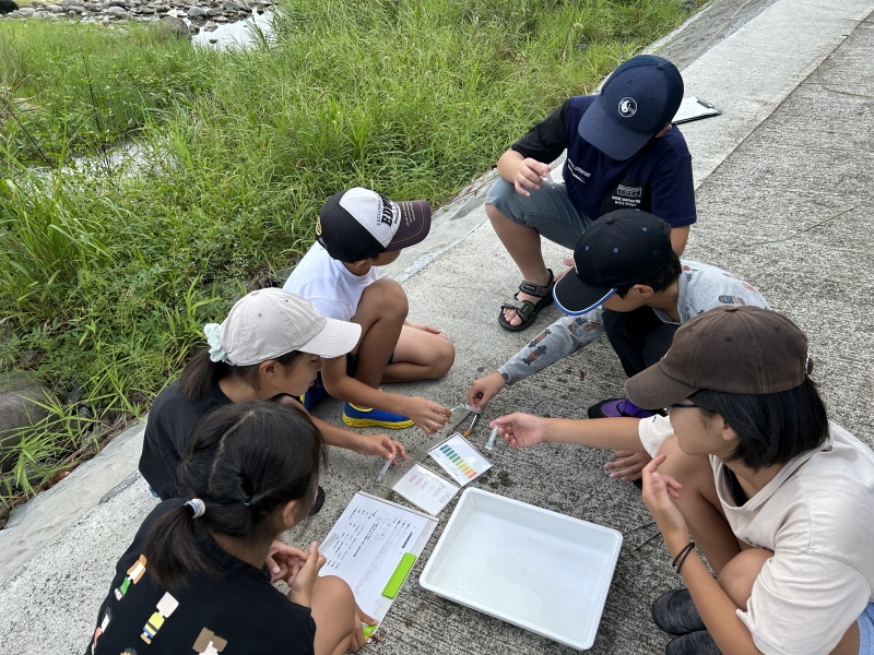 3班に分かれてまずは川の水のPHや含まれている化学物質などの検査、