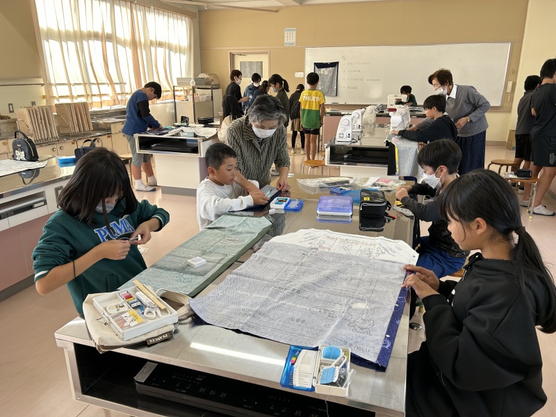 10月30日(月)と31日(火)に学校支援事業として、桂林小学校児童の エプロンづくりの支援を行いました。 児童たちは6テーブルに分かれており、桂林地区住民3~4名の方が、 生地を縫う前にかけるアイロンの使い方や、待ち針の刺し方、ミシンの使い方、 チャコペンの使い方などを教えていました。 一人ひとり丁寧に教えてくださっており、児童たちも喜んでくれたようです。 ご指導いただいたみなさま、たいへんありがとうございました。