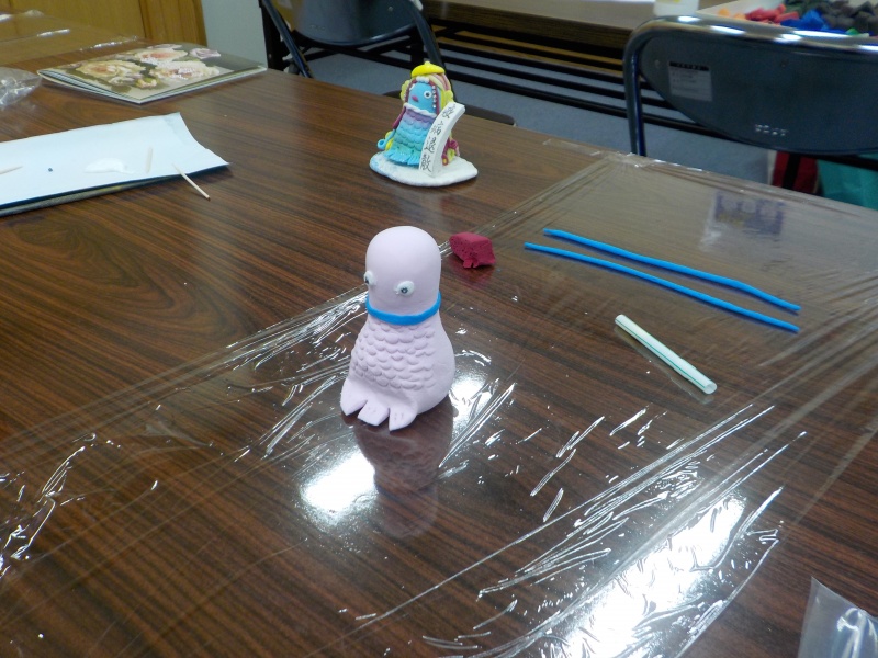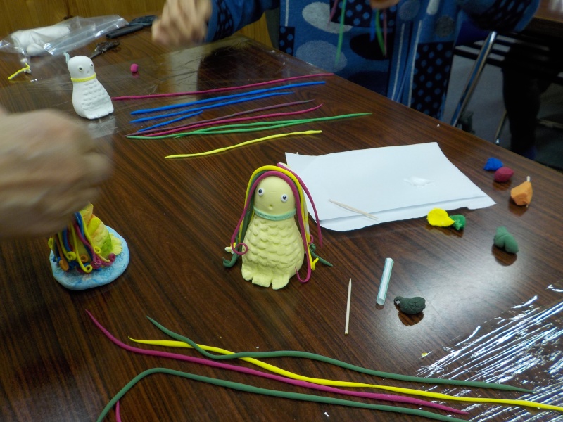 お招きして、紙粘土を使用したアマビエ作りを行いました。