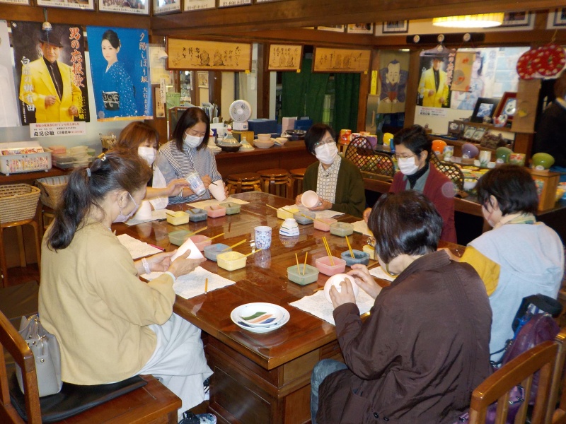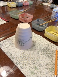 模様を入れたりと思い思いに書いていただきました。お茶碗や湯呑など