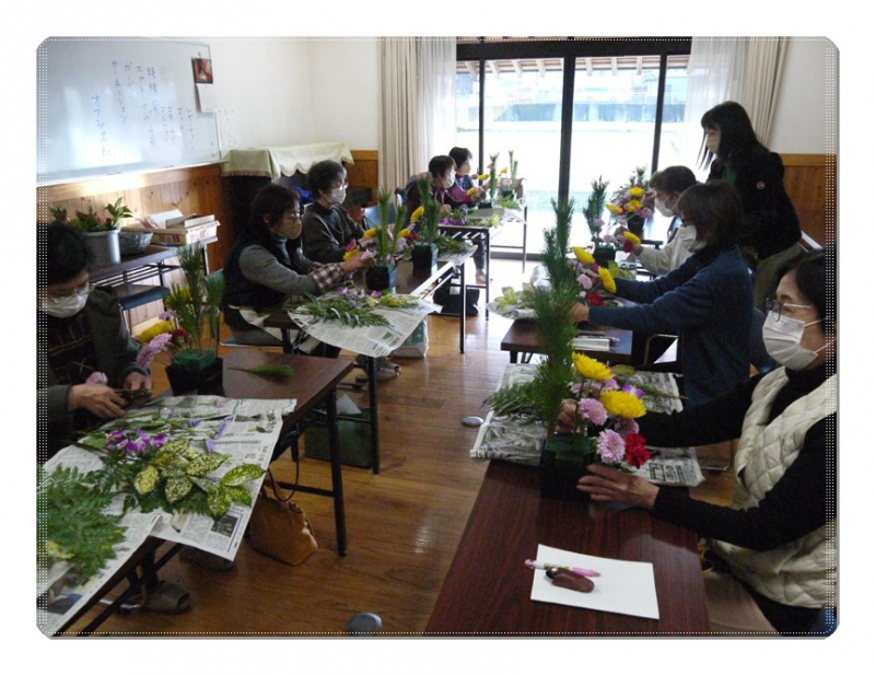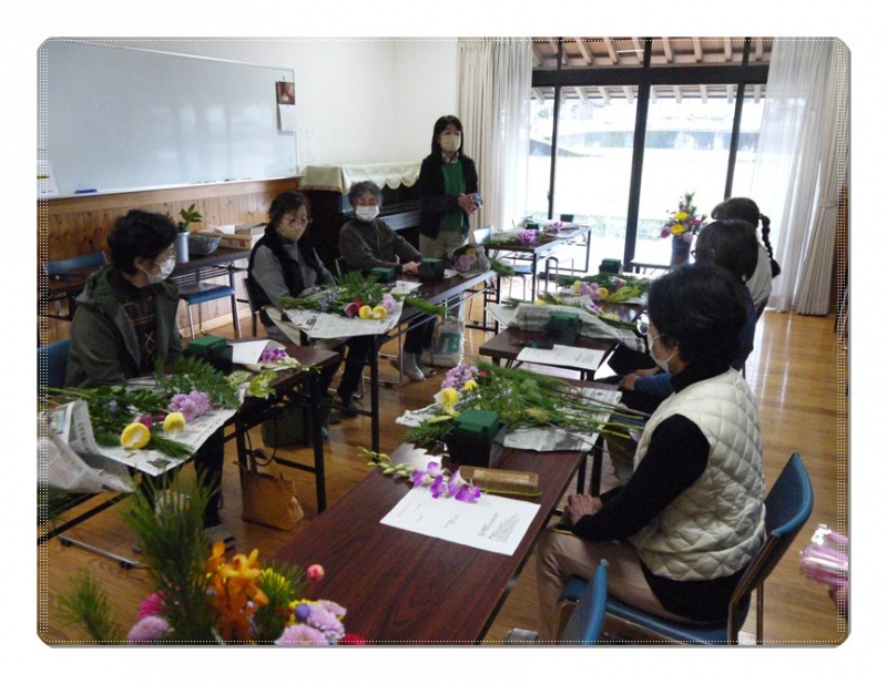 フラワーアレンジメント講座、女性セミナー編寿考教室に続いて、女性セミナーでもフラワーアレンジメント講座を行いました。みなさんにはとっても喜んでいただきました!