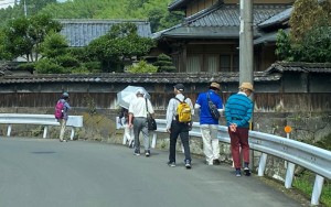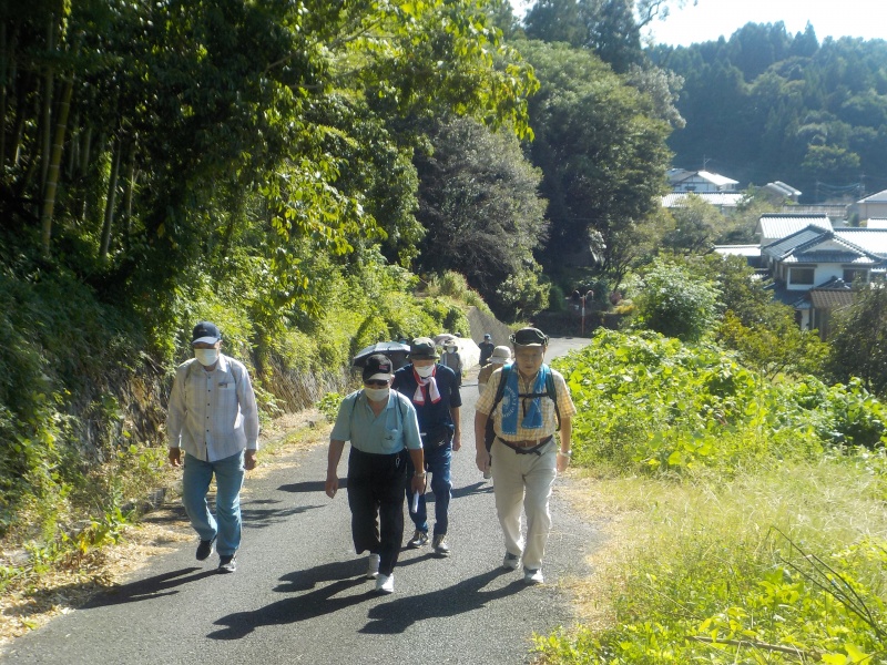 公民館に向かって有田路を歩く皆さん。ゴールまではあと少し……