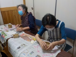 乾燥していくのでヒビが入ってきたりと、先生方にお手伝いして