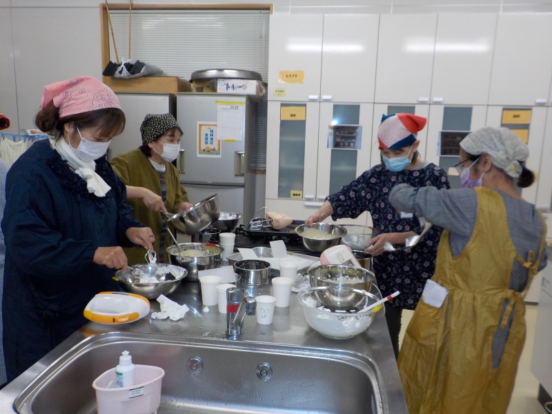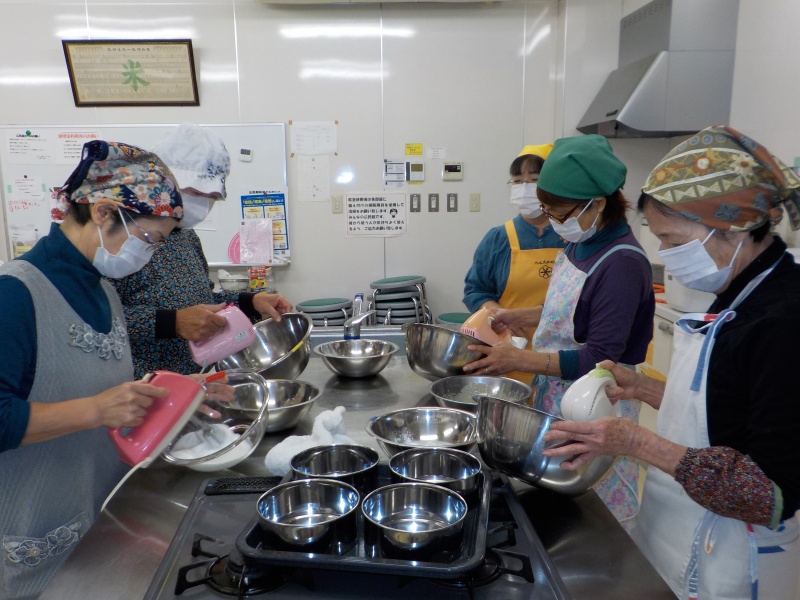 使ったスフレチーズケーキ風のケーキ作りを行いました。