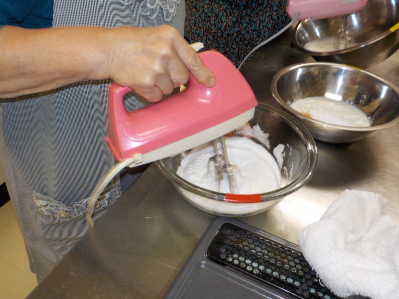 みなさんがそろったら作り方の説明をして、はじめに白砂糖と卵白で