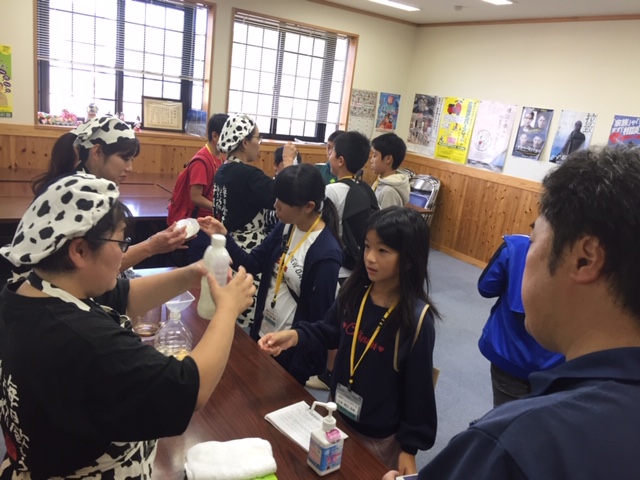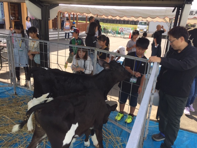 今日のチャレンジは県酪農協同組合さんのご協力で牛とのの触れ合い体験です。