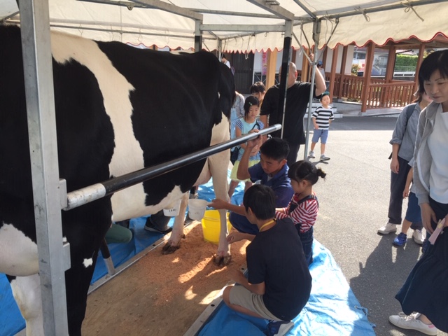 搾乳体験、子ウシとの触れ合い、バター作り体験をおこなってます。