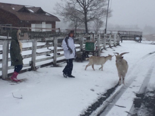 行きがけの産山村で十分雪と戯れ