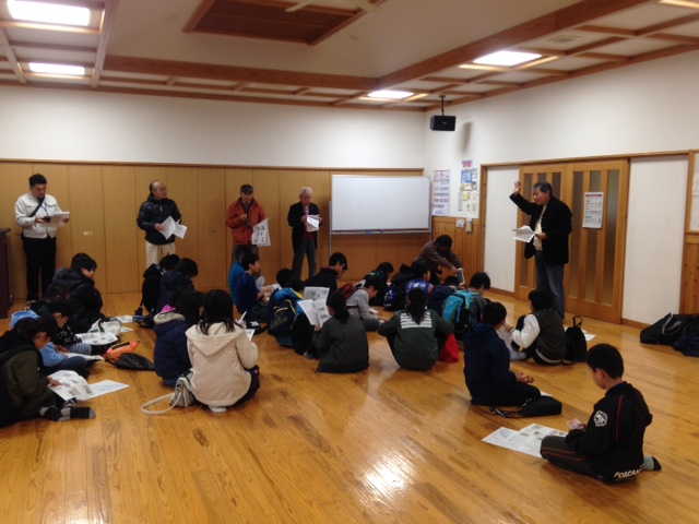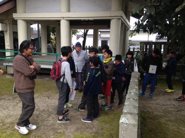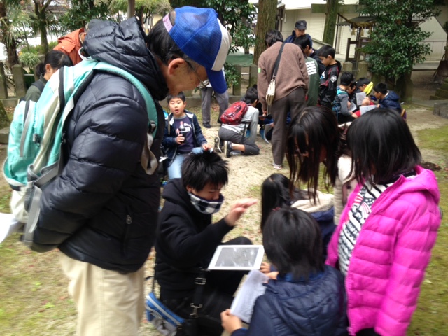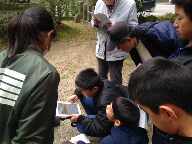 iPodを持って咸宜園放学遊山の会の方の指導のもと