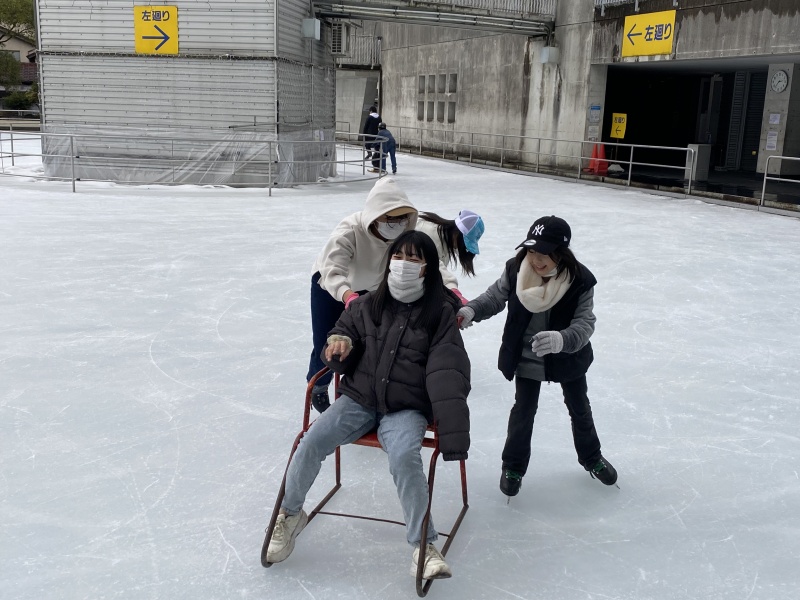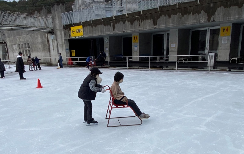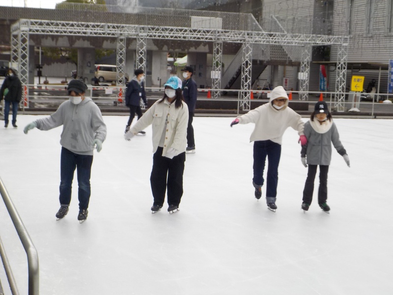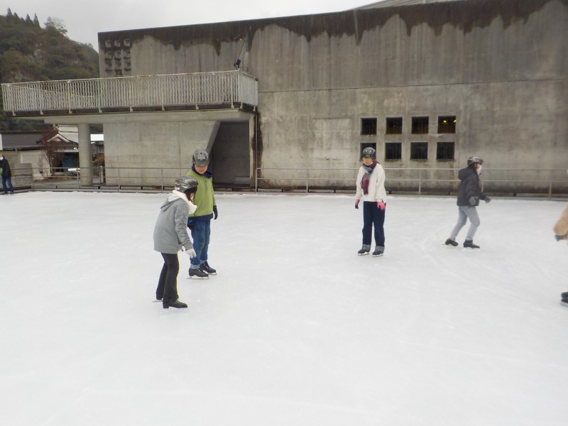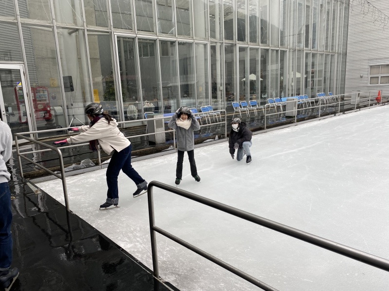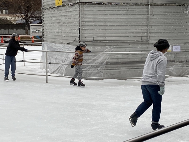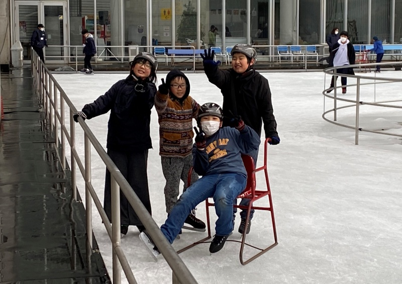 はじめてスケートを体験する子も多く、手すりにつかまって滑り始めましたが