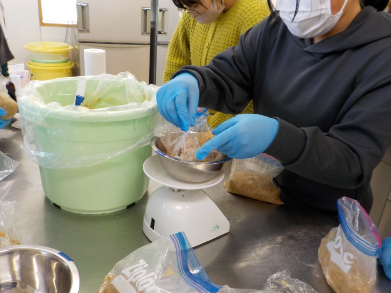 最初に10月に作っていた味噌を桶から出し、食推協の