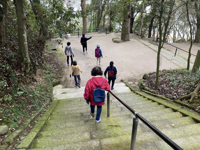 スクールバスで亀山公園まで行き、はじめに亀山公園の一番上の
