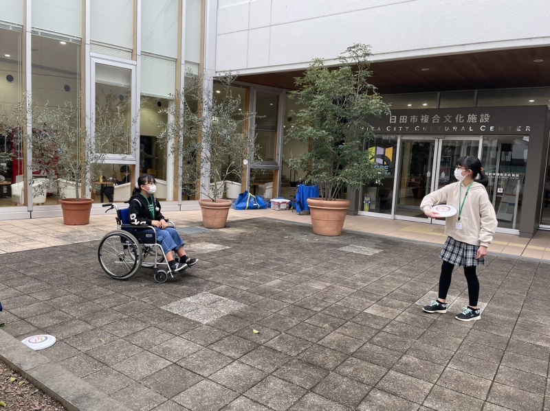 それぞれのチームで車いすを使用し競技の体験を行いましたが、車いすに乗っている