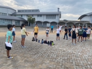 野外炊飯の片付けとアスレチックで遊んだ後は、夜のお楽しみ!ナイトウォークを行いました。