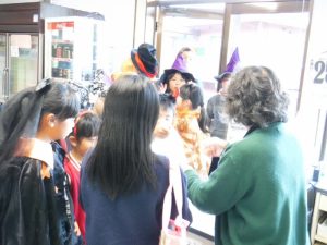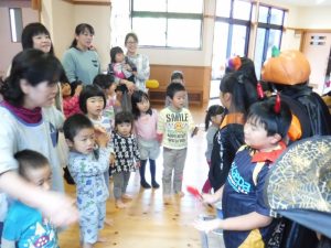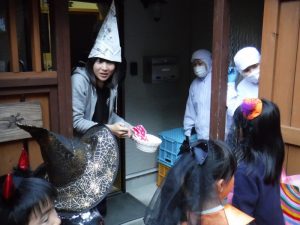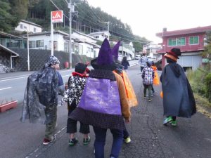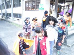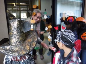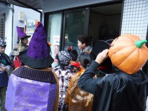 児童22名は、ハロウィンの仮装をして「トリックオアトリート!」と言いながら、地域の施設を回りました。