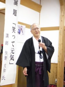 講師は矢野大和さんで、「笑って元気」をテーマに講演いただきました。
