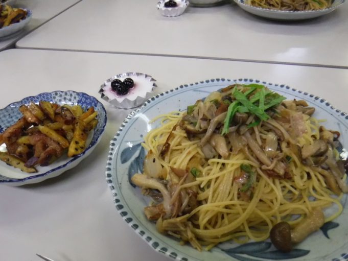 11月15日、男の料理教室を開催し「きのこパスタ」「さつまいもと豚肉の炒め物」「ミルク寒天」を調理しました。