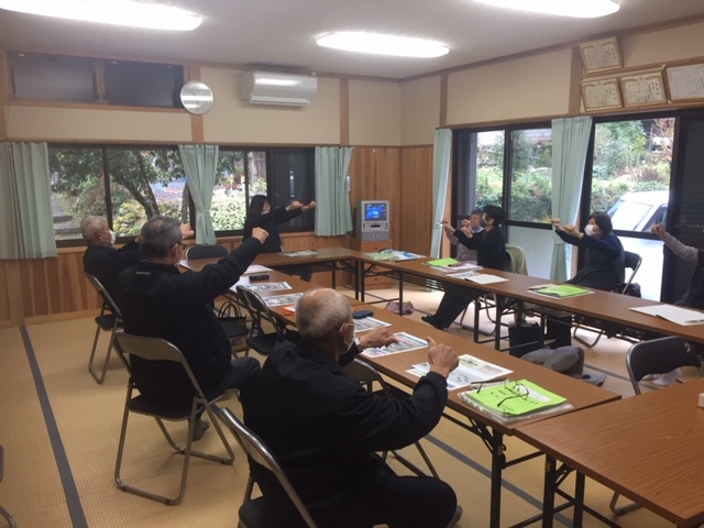 今日は柚木のコミュニティセンターにお邪魔して、めだかの楽公 です。まずは座って出来る健康体操からスタートです!