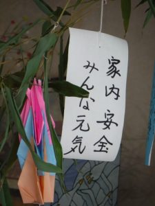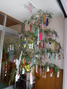 お隣のしおじ苑さん利用者や前津江公民館に来られた高齢者の方々が短冊にお願い事を書いて